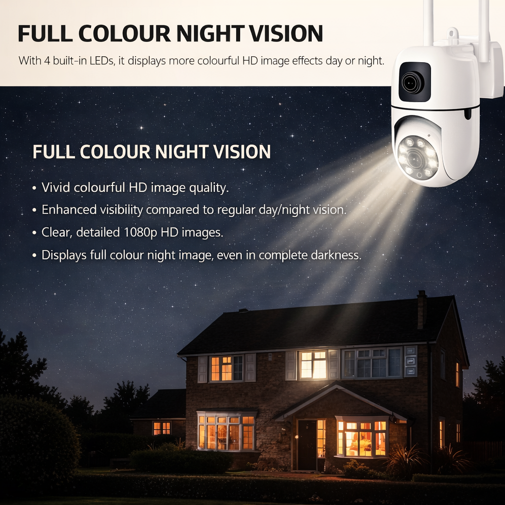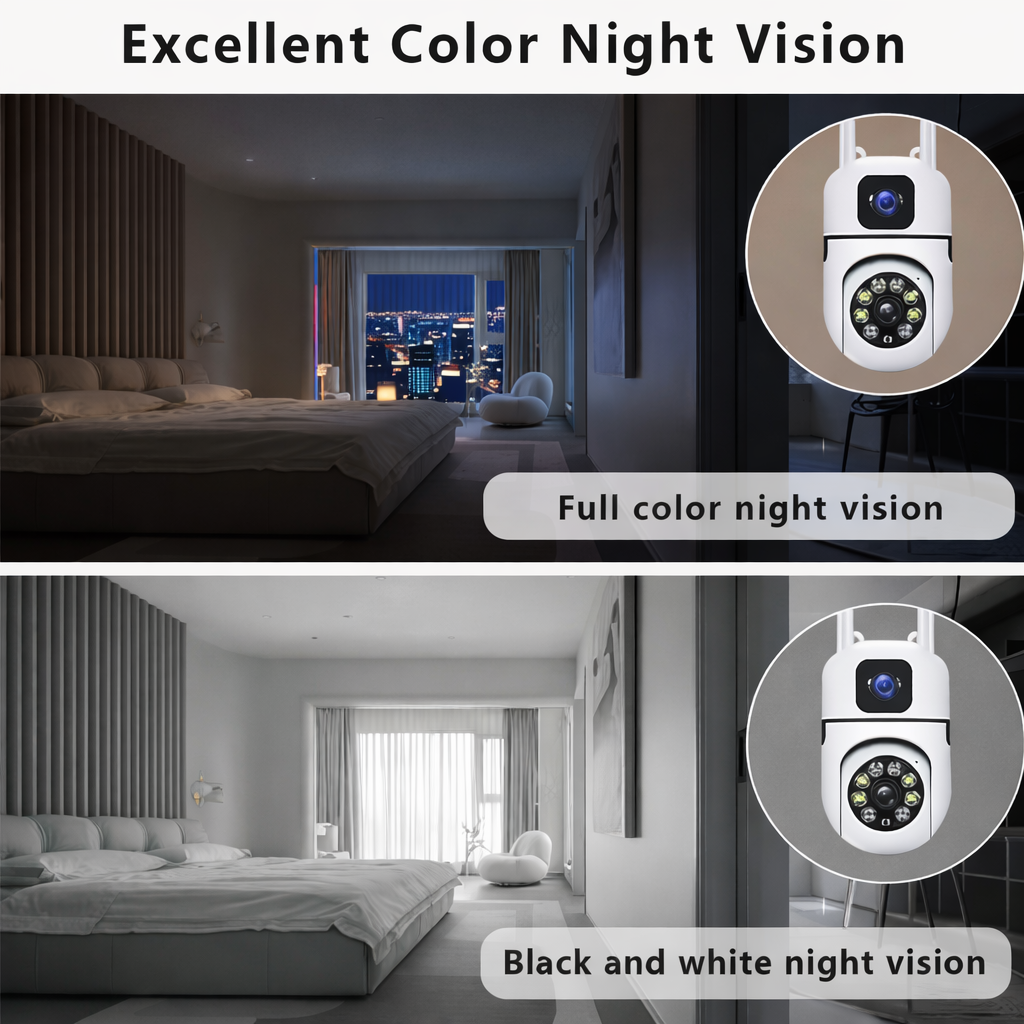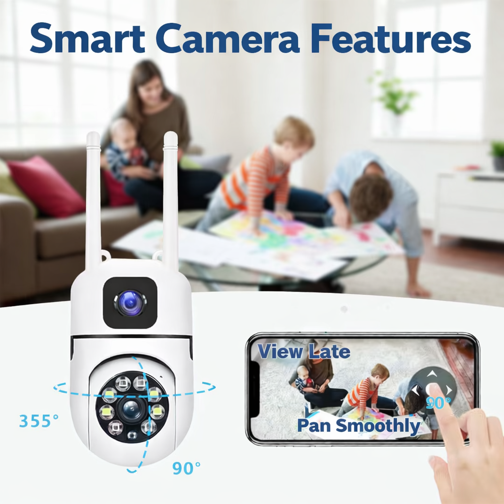 Dual Lens Technology: Dual lens WiFi camera for wider coverage and better security monitoring