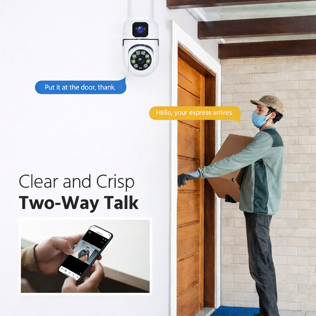 Two-Way Audio Support: Built-in mic and speaker security camera for two-way communication