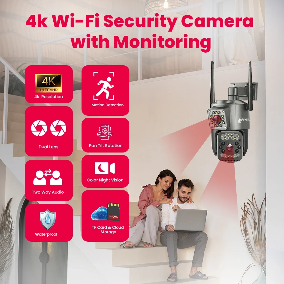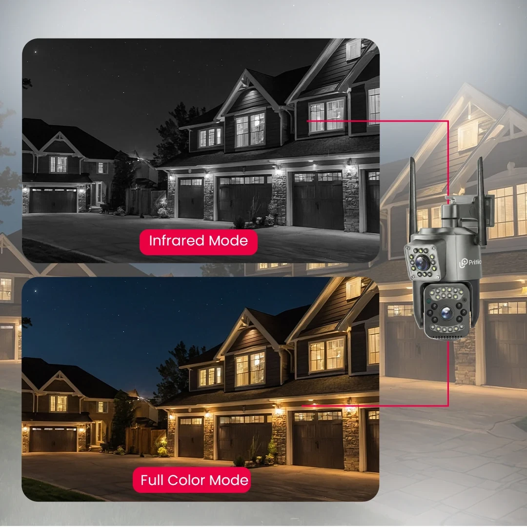 Prifion 5+5 Dual Lens EagleEye PTZ WiFi CCTV Outdoor Camera with Night Vision & 360° Pan Tilt