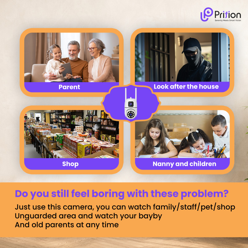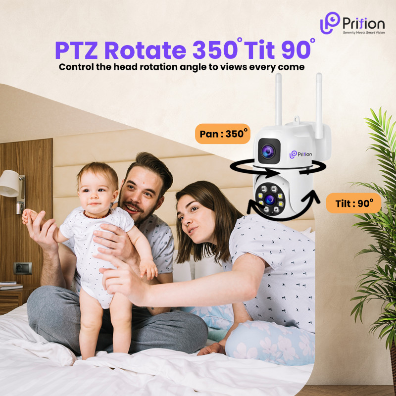 The Prifion Dual Lens Smart WiFi Security Camera is an advanced CCTV camera designed for reliable home and office security. This WiFi camera features dual lens technology for wider coverage and 5MP Full HD video quality for clear monitoring.